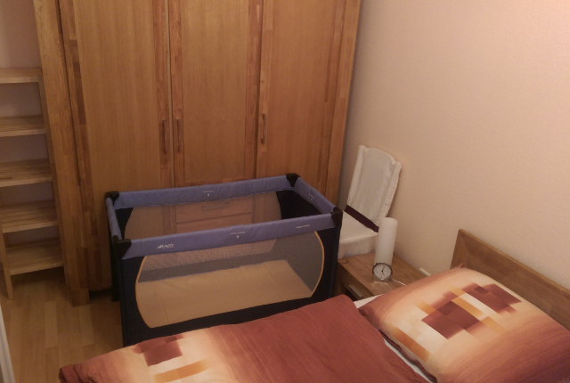 Schlafzimmer mit Kinderreisebett der Gäste